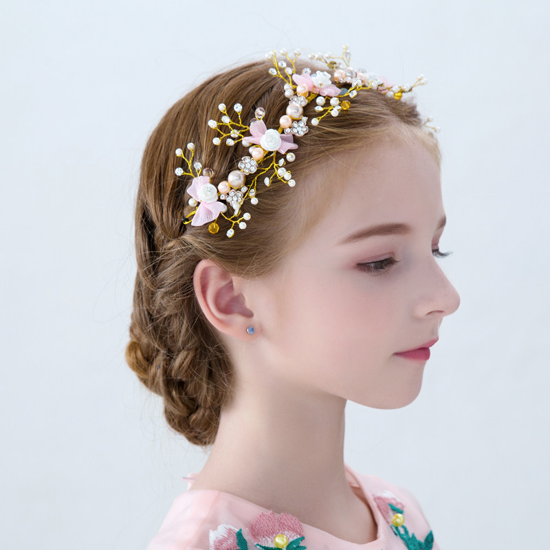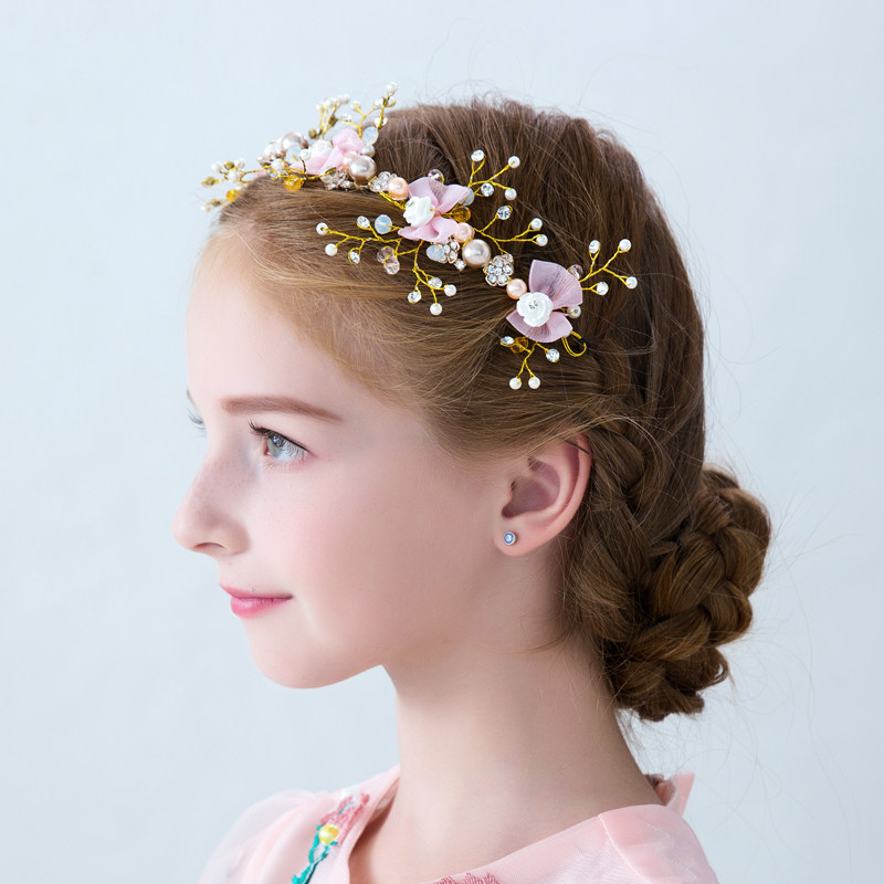 小さな花々とパールビーズを繊細に組み合わせた華やかなヘアアクセサリーです。 柔らかな花びらとキラキラと輝くビーズが枝状のワイヤーに散りばめられ、髪に自然になじむデザインになっています。 ピアノ発表会ドレスに合わせることで、お子様の晴れ舞台をより一層特別なものに演出します。 サイドや後ろ髪に飾るだけで、エレガントで上品な印象を与えます。