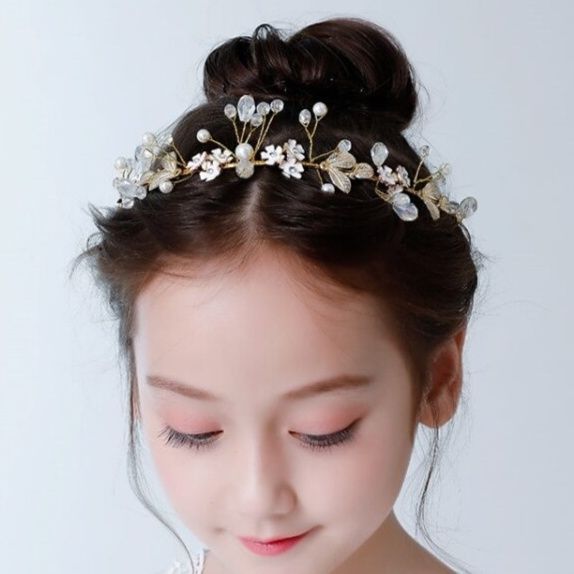 細いワイヤーに立体的な花々やパールが散りばめられており、頭に沿って優しくフィットします。