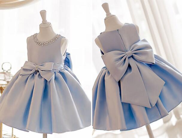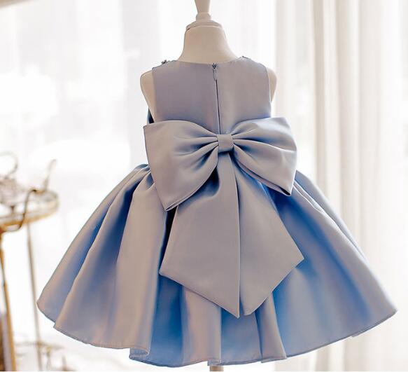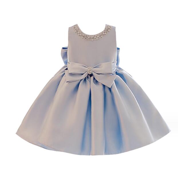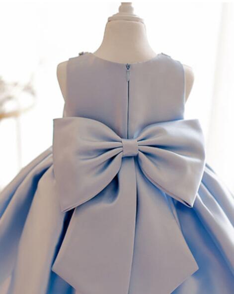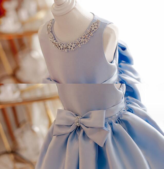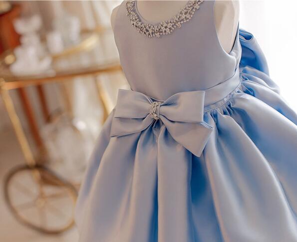 上品なビジュー装飾とエレガントなリボンが美しいピアノ発表会用ドレスです。