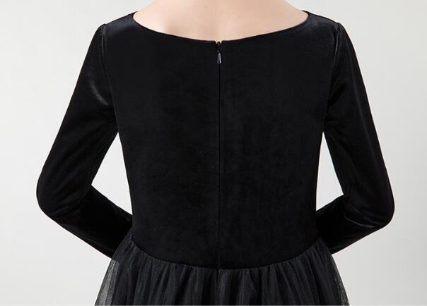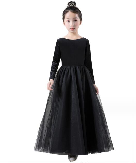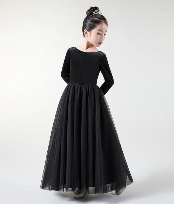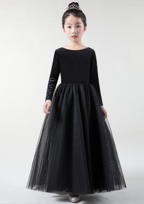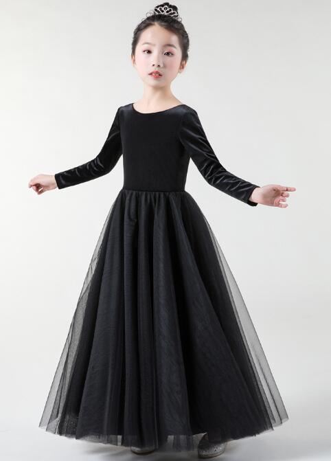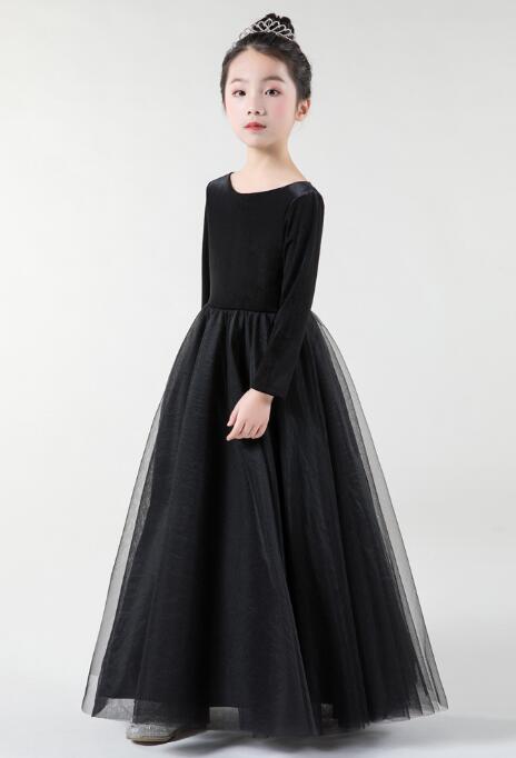 エレガントな黒色のピアノ発表会用ドレスです。
