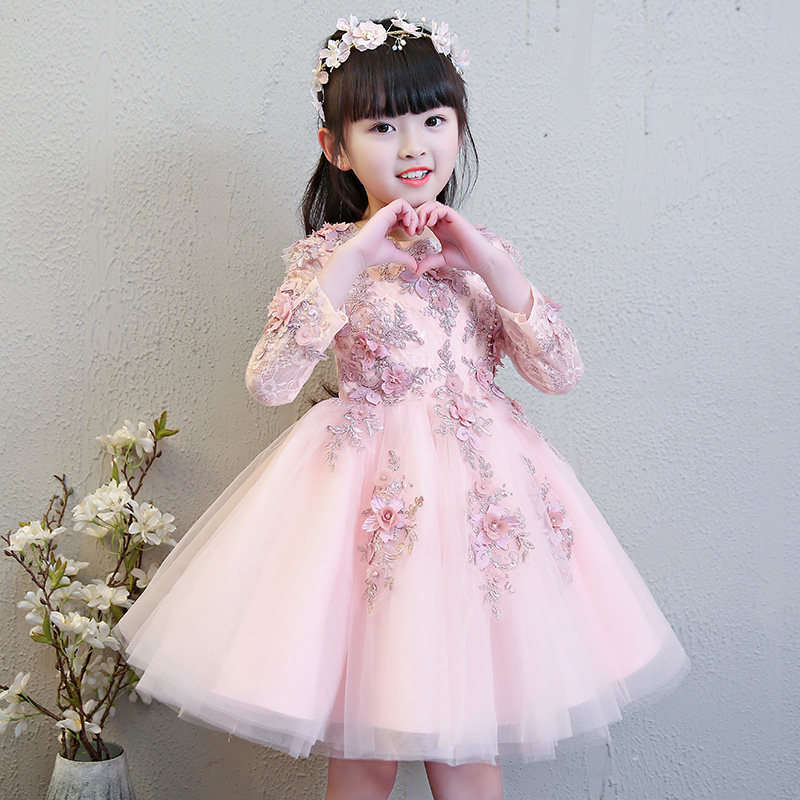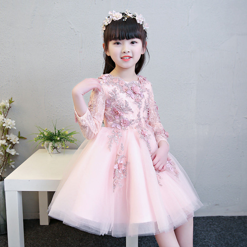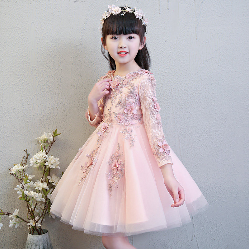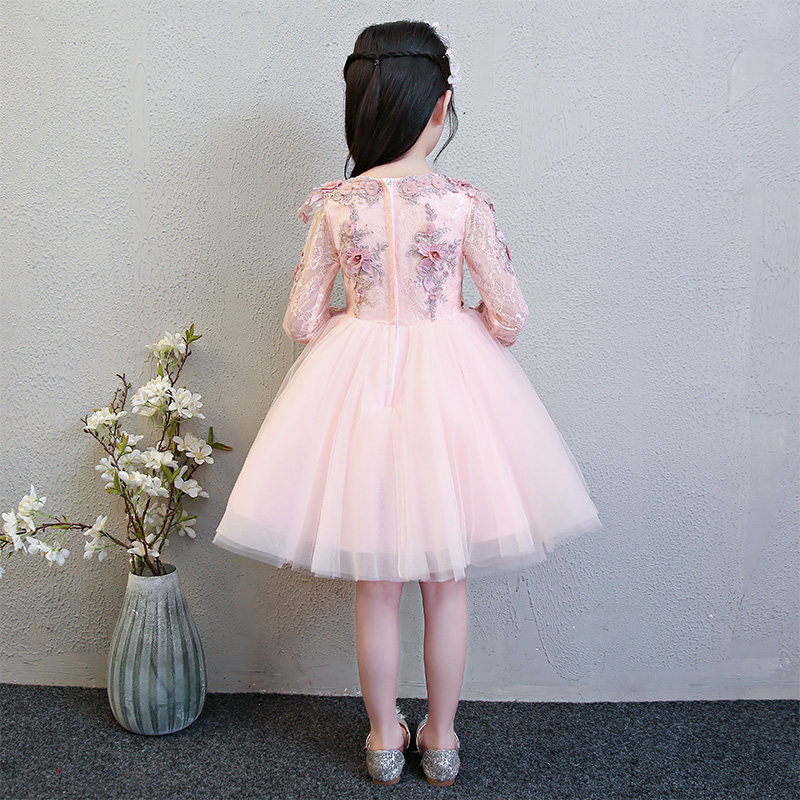 立体的な刺繍装飾が舞台映えし、特別な日のピアノ発表会ドレスとして最適です。